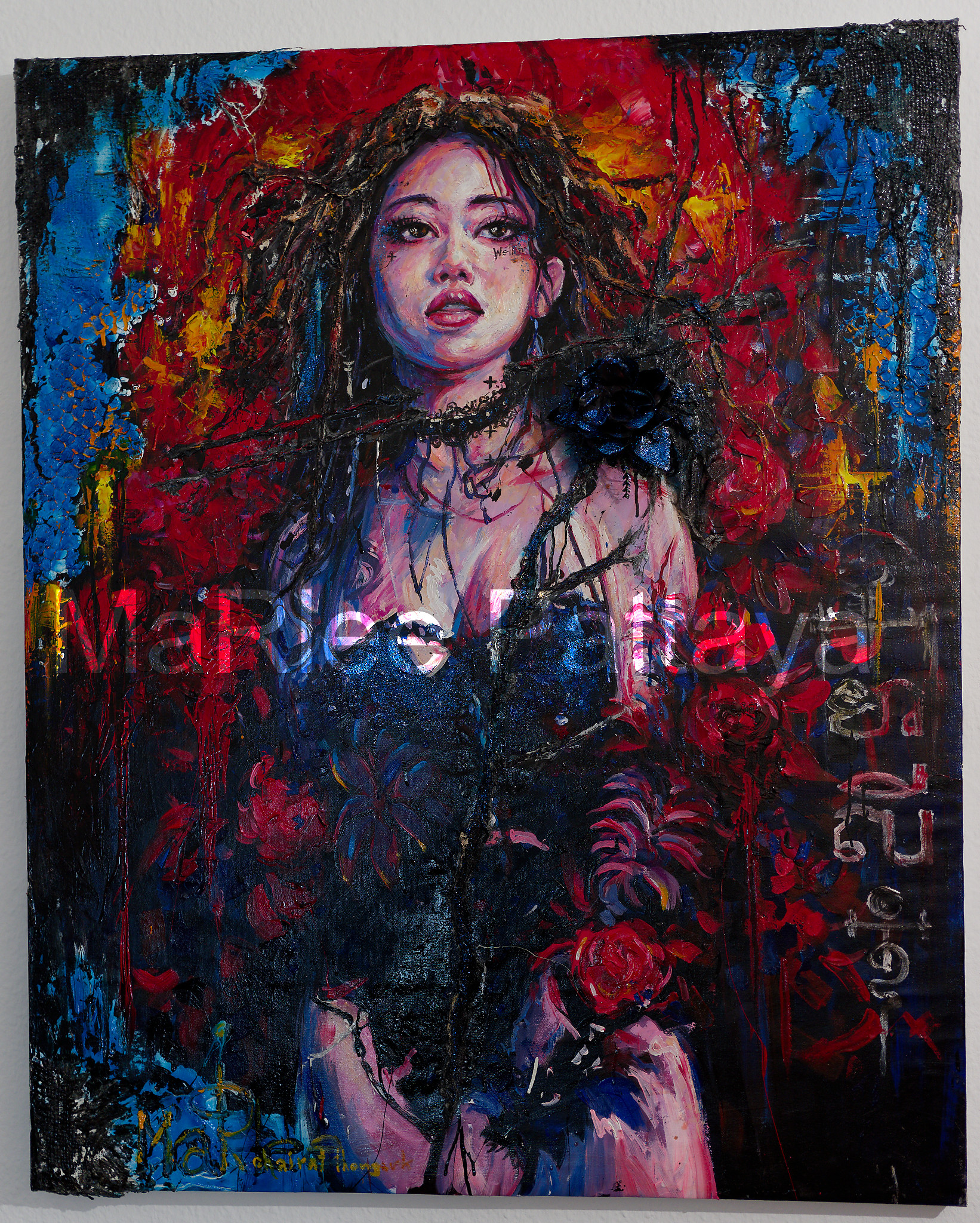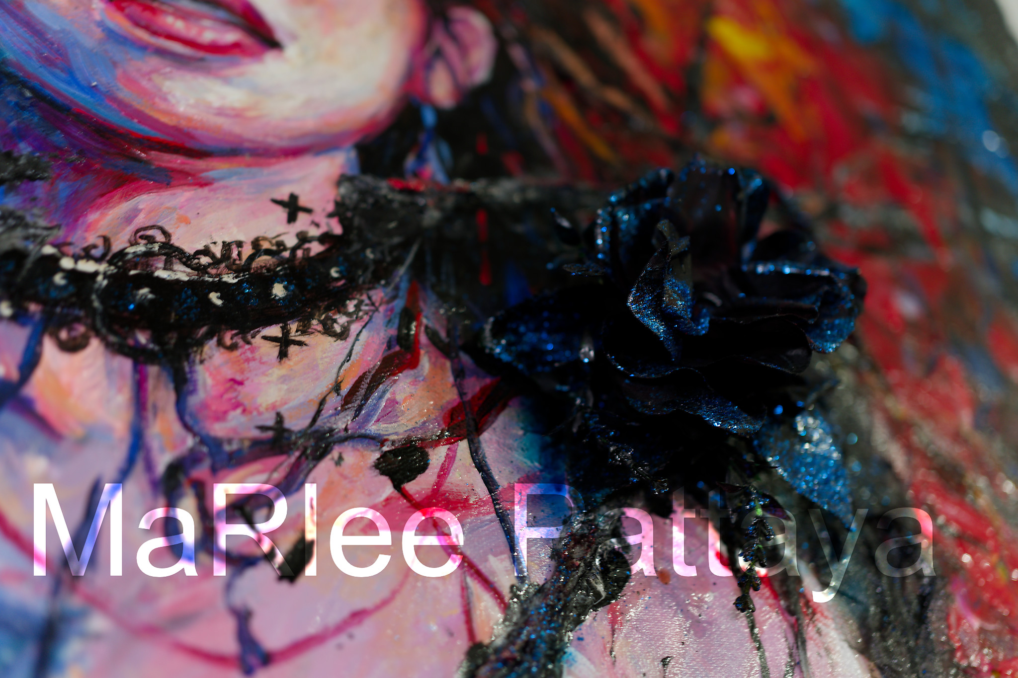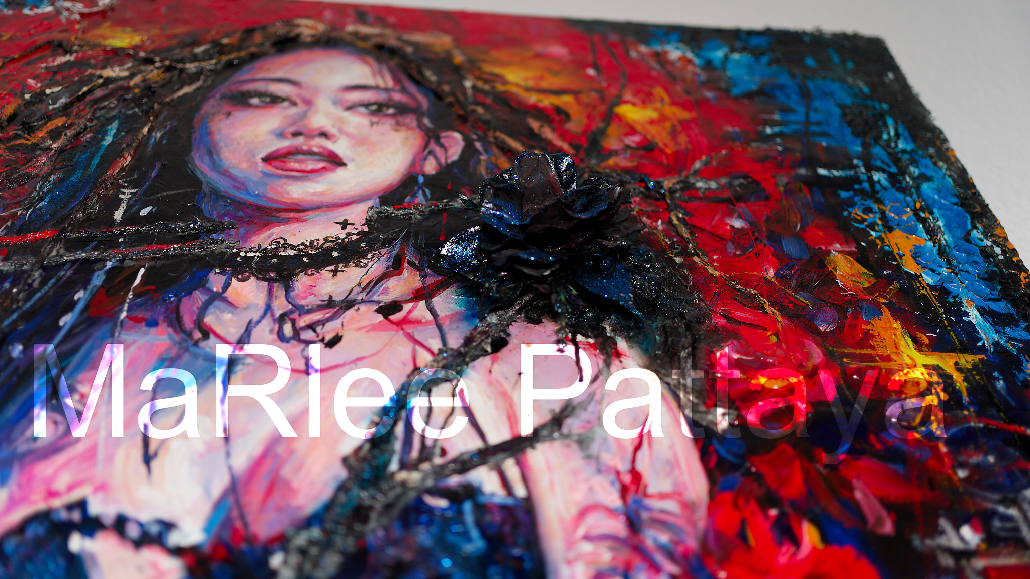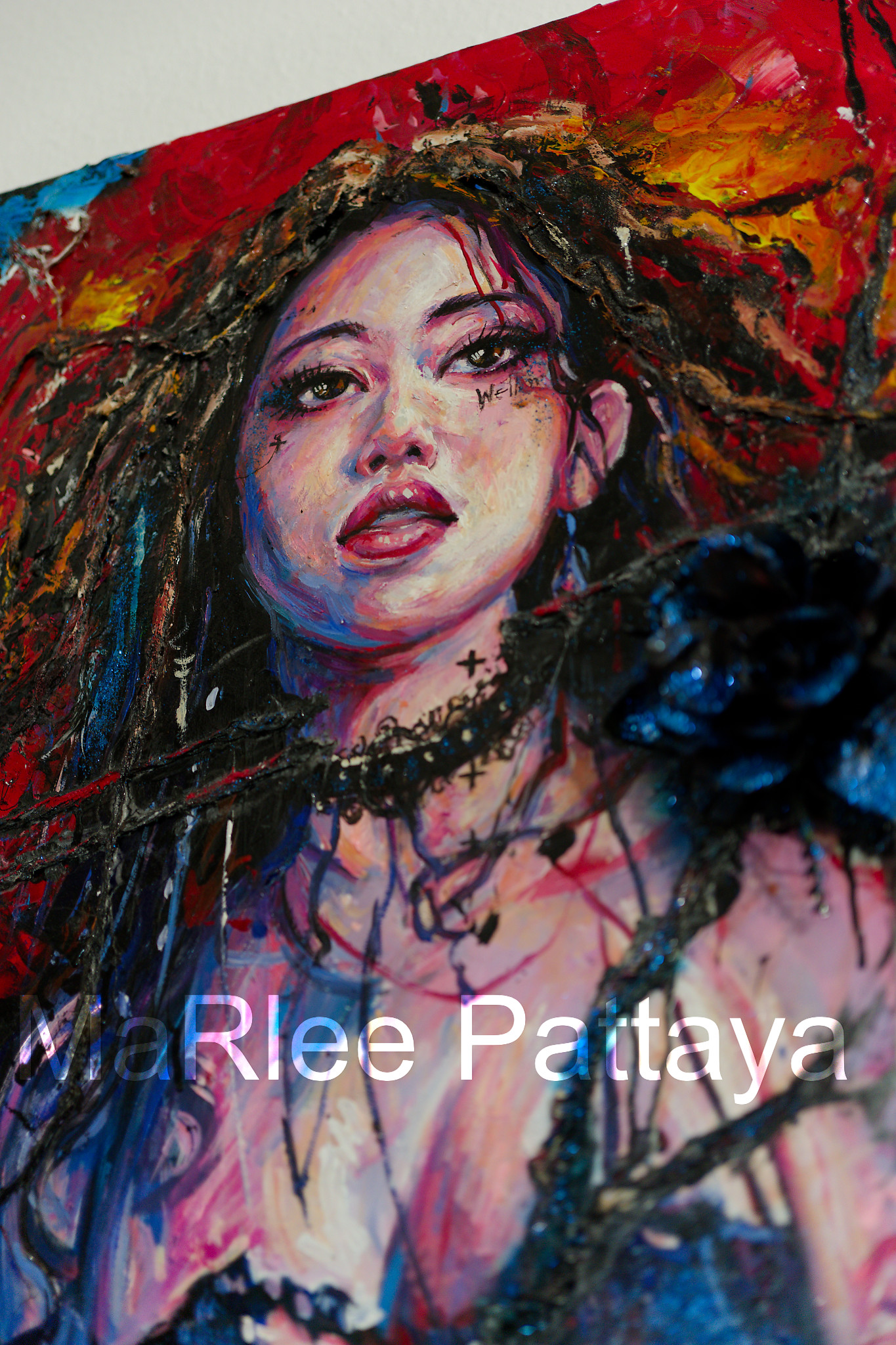 Zum Verkauf steht ein außergewöhnliches, großformatiges Originalgemälde des thailändischen Künstlers MaRlee, das durch seine kraftvolle Präsenz, emotionale Intensität und materialreiche Ausführung besticht. Dieser Künstler arbeitet fernab des kommerziellen Kunstmarktes. Dadurch sind es limitiert verfügbare Werke außerhalb digitaler Massenvermarktung.